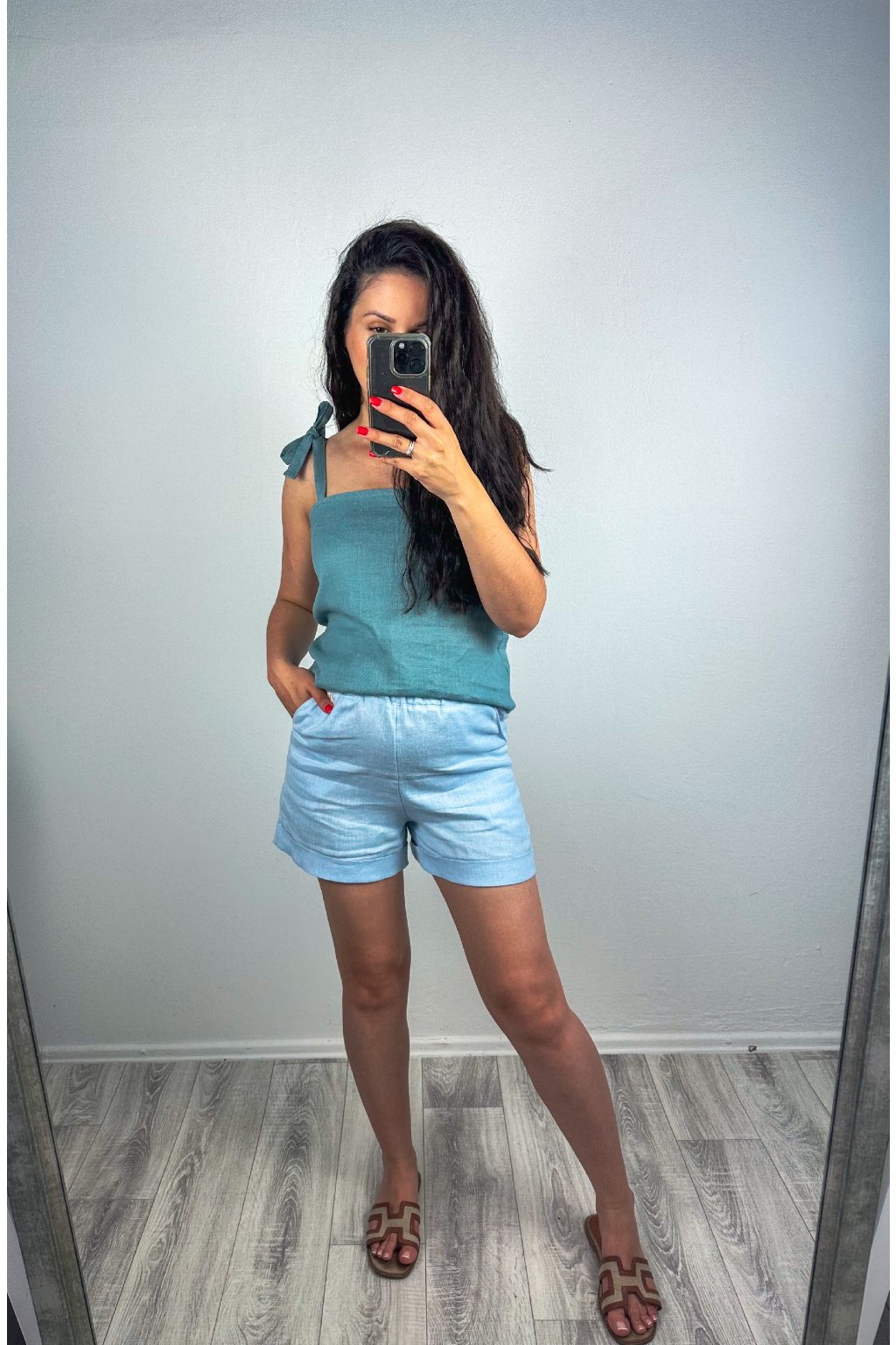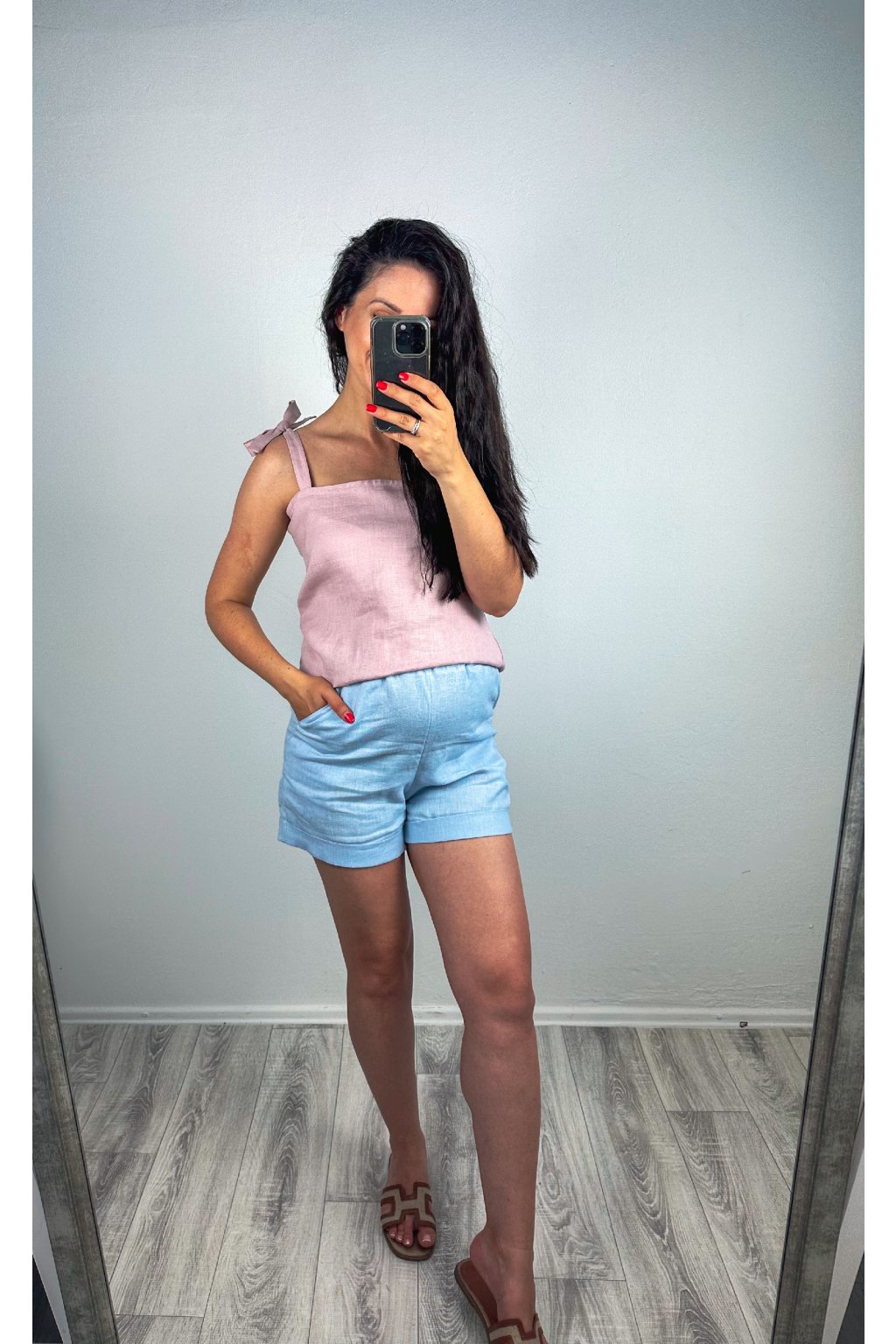 Štýlové a pohodlné ľanové tielko na viazanie, ktoré si môžete uviazať na mašličku alebo uzlík podľa nálady. Vyrobené zo 100 % prírodného ľanu, ideálne na letné dni aj vrstvenie počas chladnejších večerov. Tielko má jednoduchý, nadčasový strih s nastaviteľným viazaním a jemným výstrihom, ktorý lichotí každej postave.