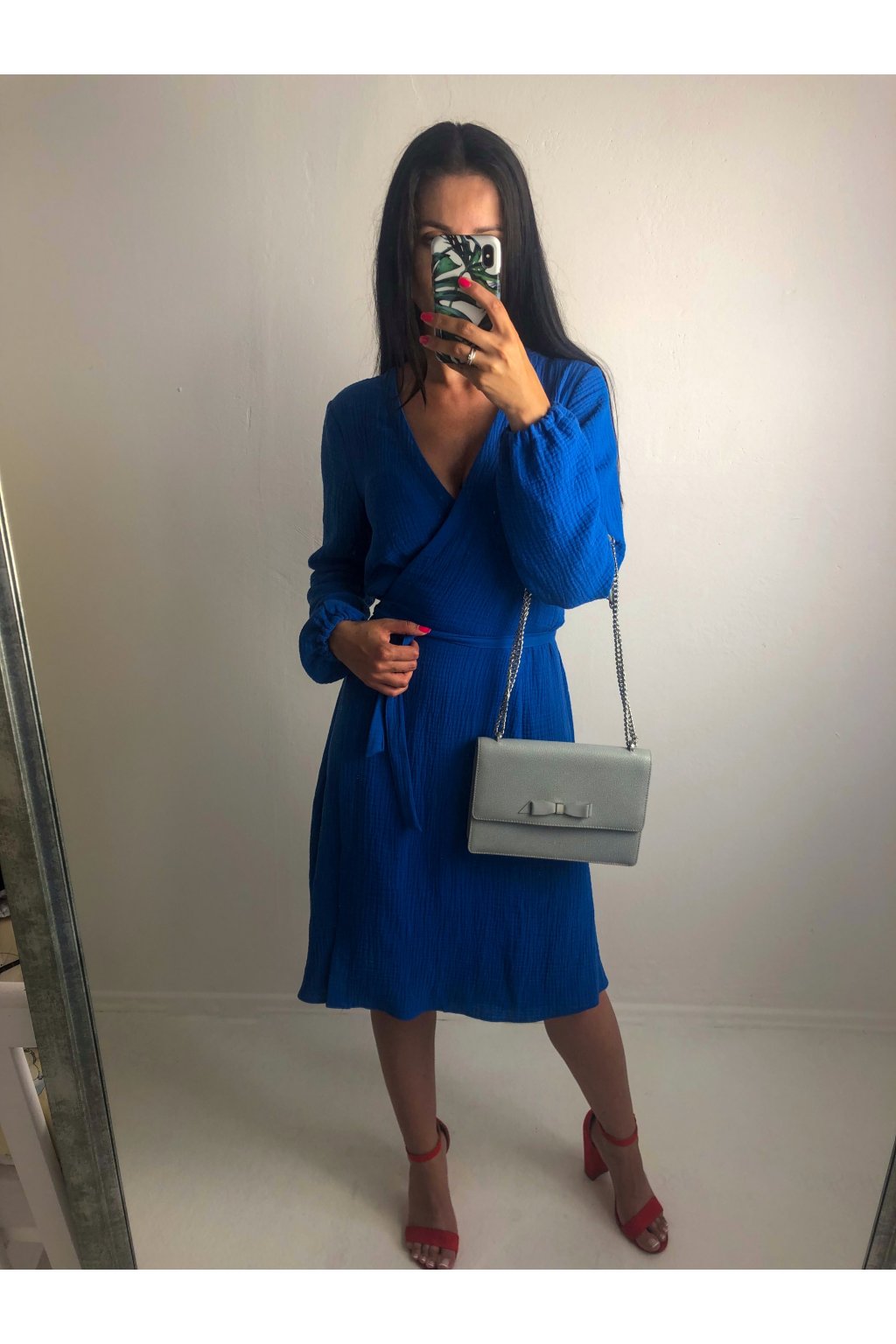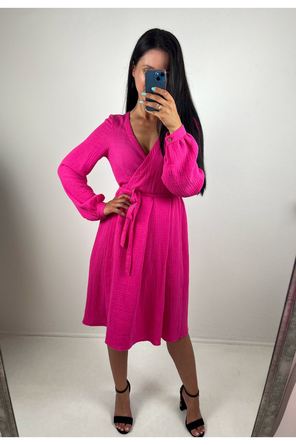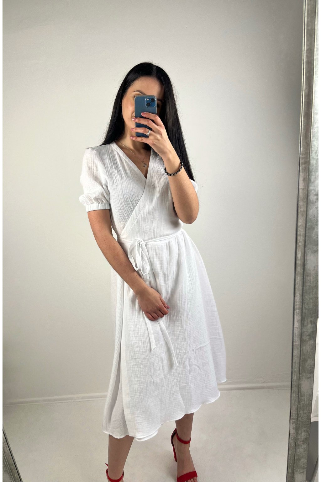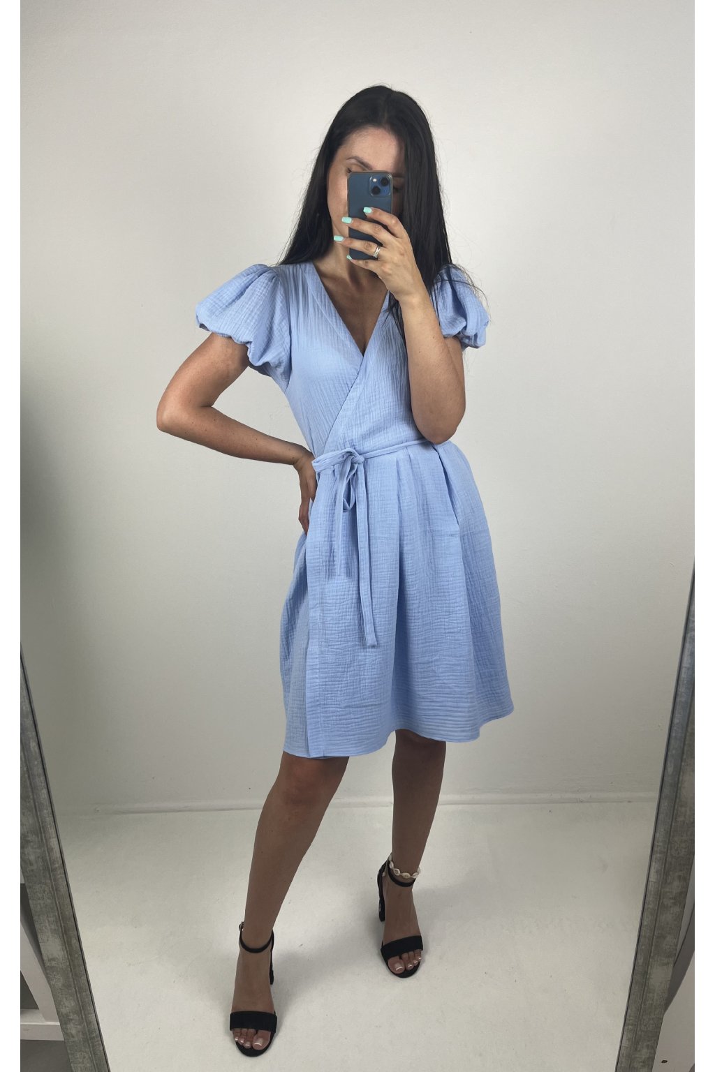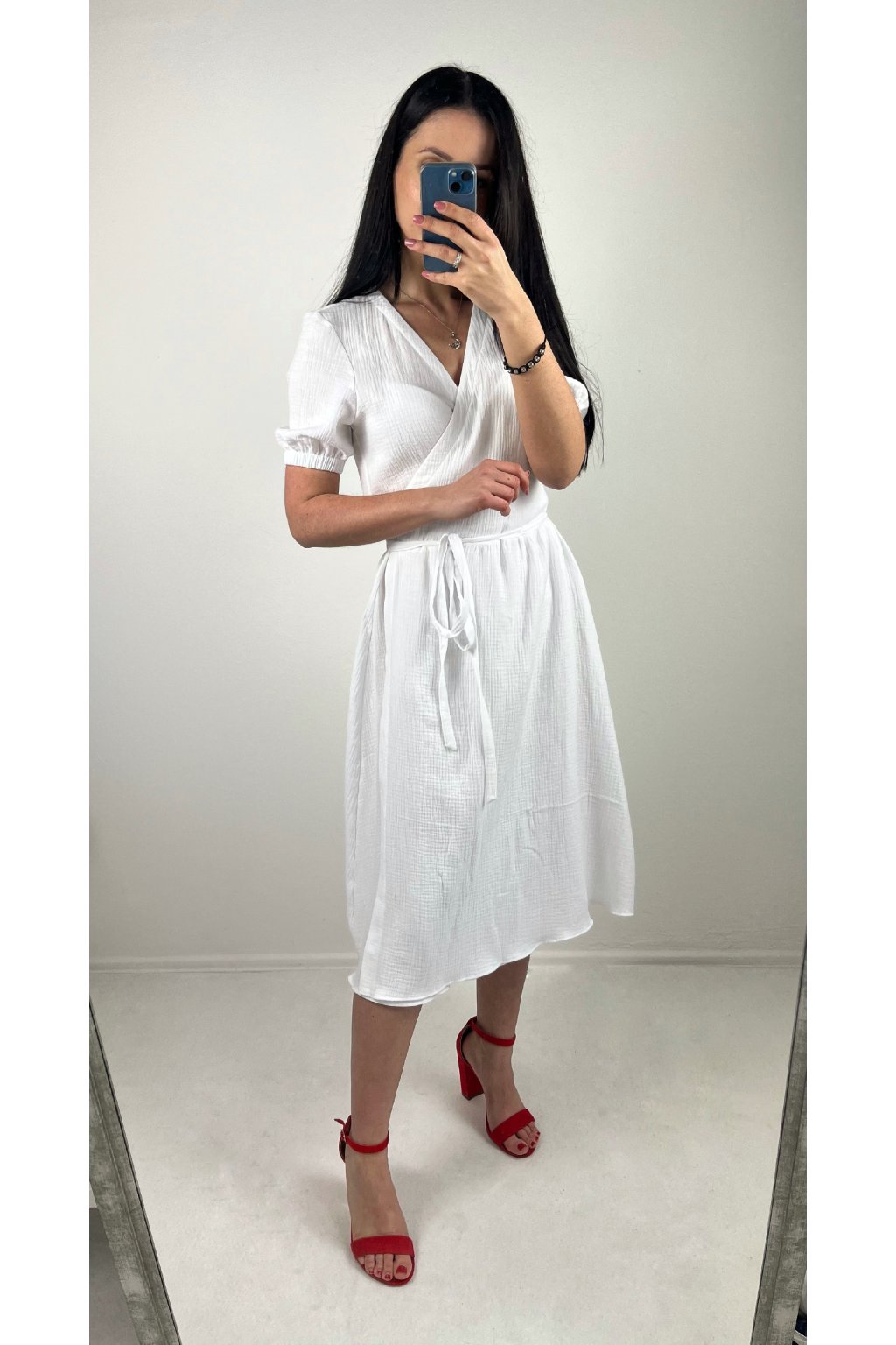 Tieto šaty sú ušité z mäkkého mušelínu, ktorý je tak príjemný na pokožke, že ani nebudete vedieť, že ich máte na sebe – ideálna voľba najmä na horúce letné dni. Mušelín je obľúbený materiál pre svoju ľahkosť, jemnosť a priedušnosť, čo ho robí ideálnym pre košele a šaty. Navyše, vďaka dvojitej vrstve sú šaty nepriehľadné a zaručujú pohodlie počas celého dňa.