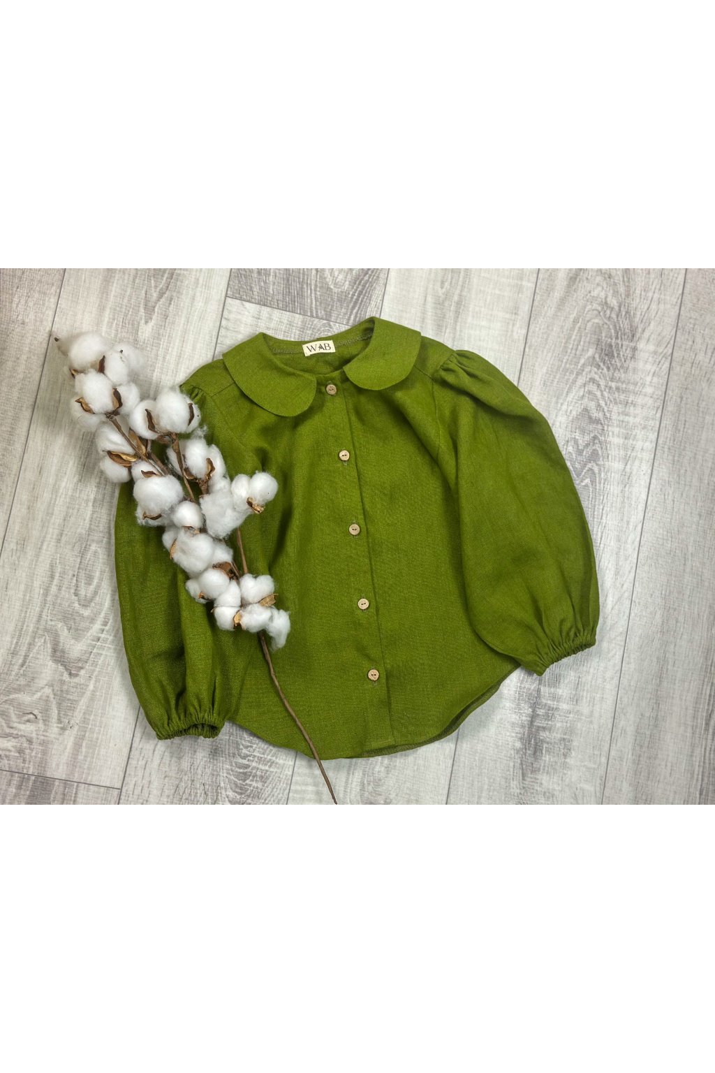 Ľanová blúzka s golierikom a puf rukávmi je ušitá zo 100%-ného ľanu.