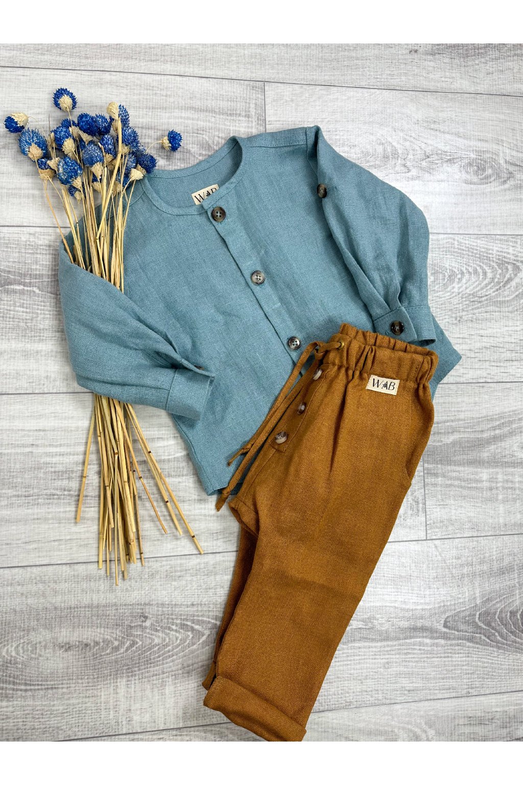 Táto košieľka je navrhnutá s ohľadom na pohodlie a praktickosť vašich detí. Zapína sa vpredu na gombíky a má voľnejší strih, ktorý zabezpečuje komfort počas celého dňa. Ľan, ako materiál, nie je pružný, ale vyniká svojimi jedinečnými vlastnosťami – výborne absorbuje vlhkosť a efektívne ju odvádza, čo zabezpečuje pocit sucha a komfortu. V zimných mesiacoch vás príjemne zahreje, zatiaľ čo v lete poskytuje osviežujúce chladenie, čím je ideálny po celý rok.
