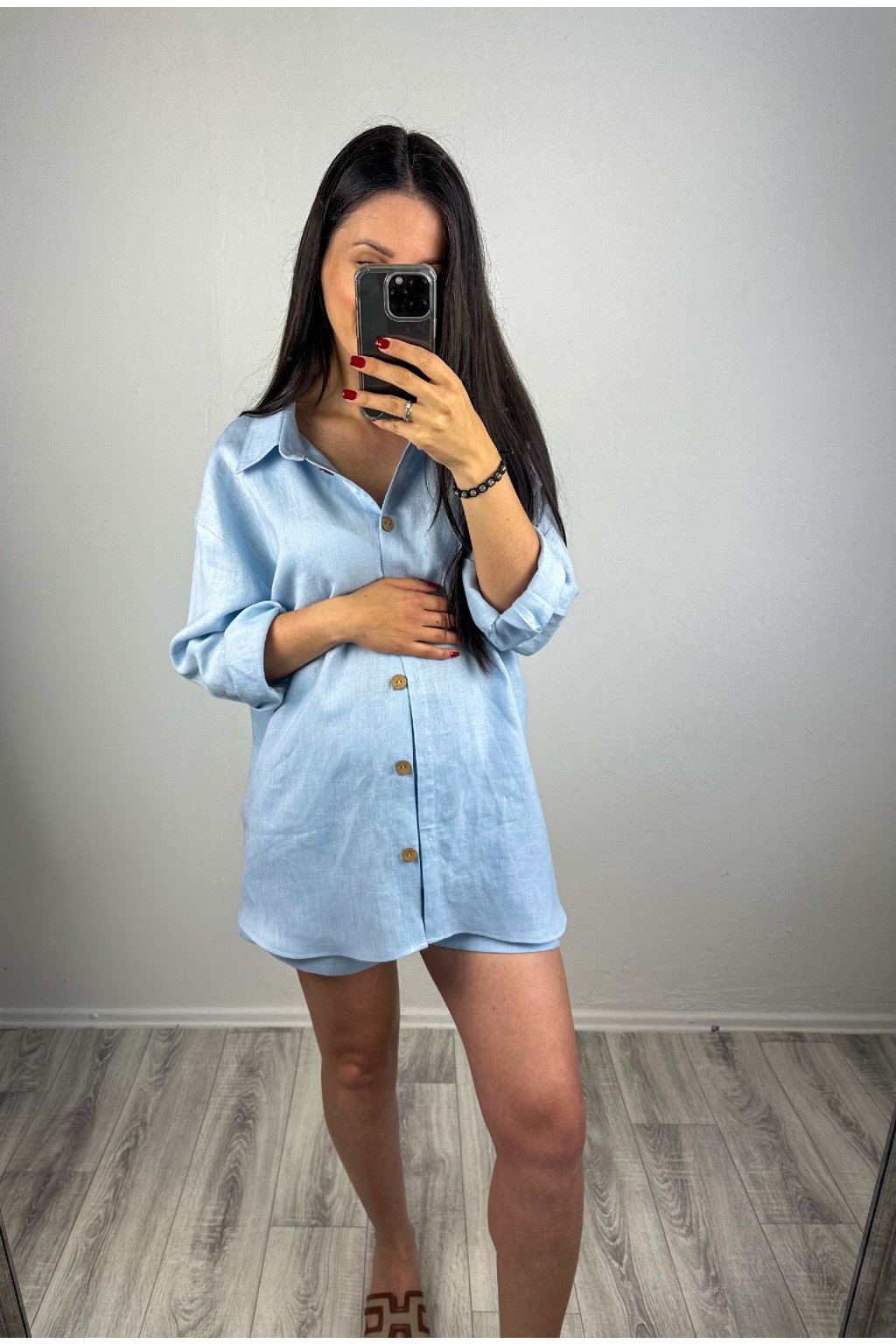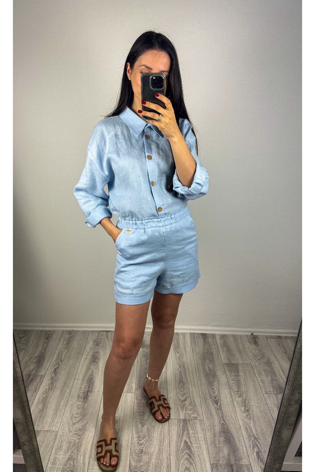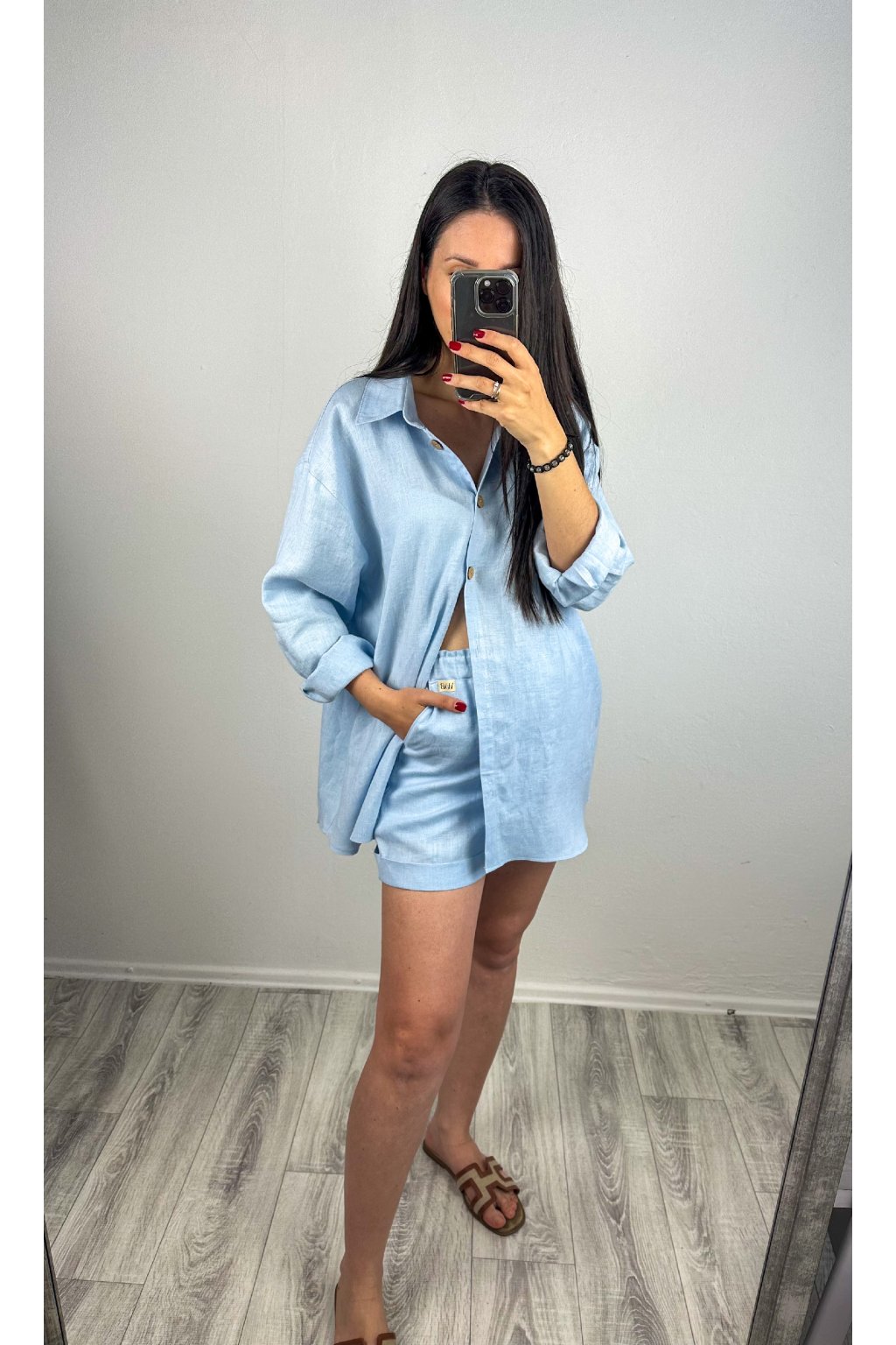 Objavte ľahkosť a nadčasovosť s týmto elegantným letným setom z 100% prírodného mäkkčeného ľanu. Je ideálny na horúce dni, dovolenkové prechádzky, festivaly či len tak na bežné nosenie, keď chcete vyzerať upravene, no cítiť sa pohodlne.