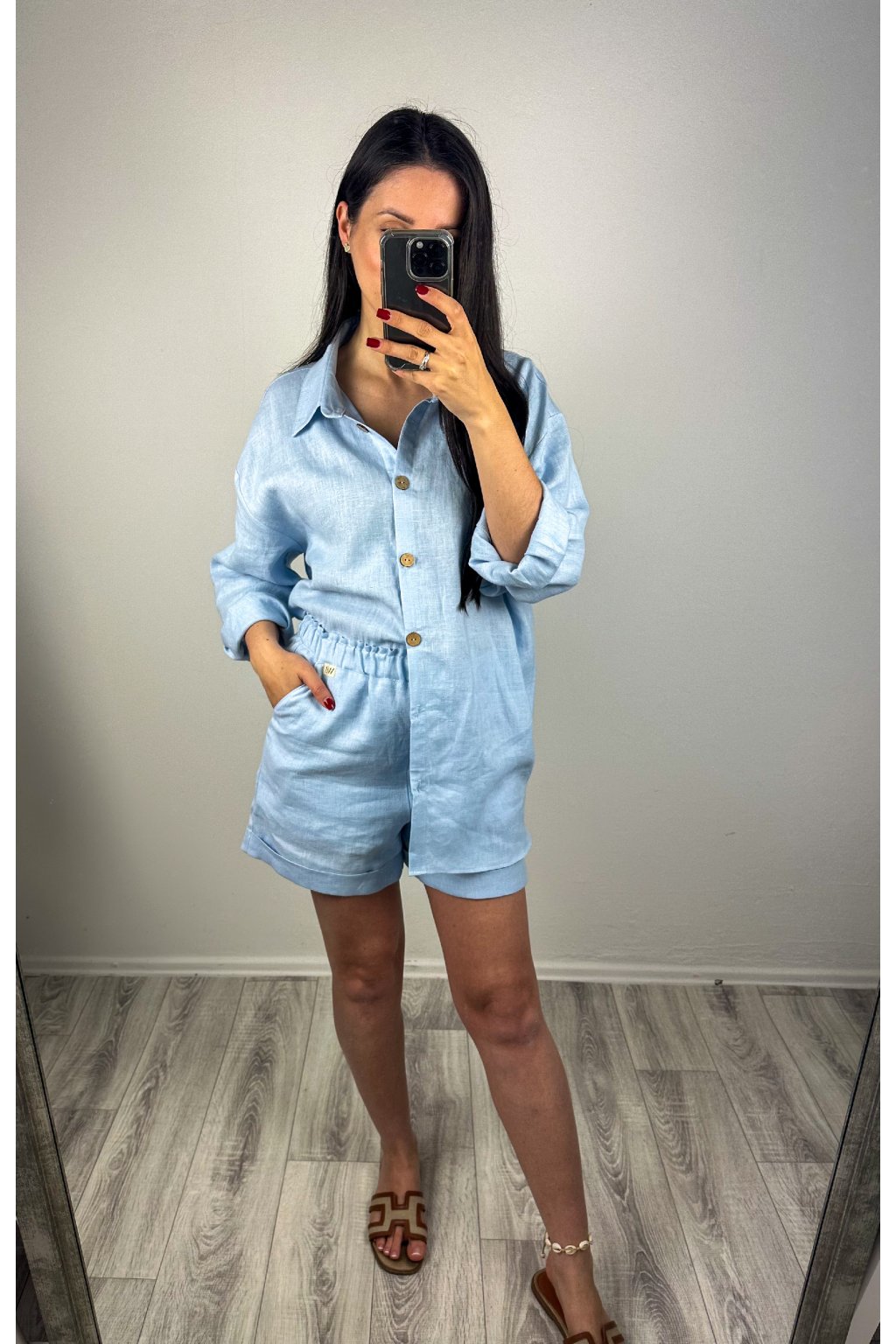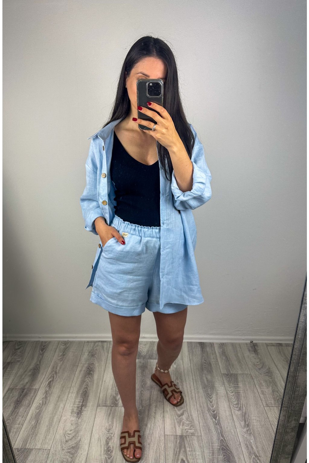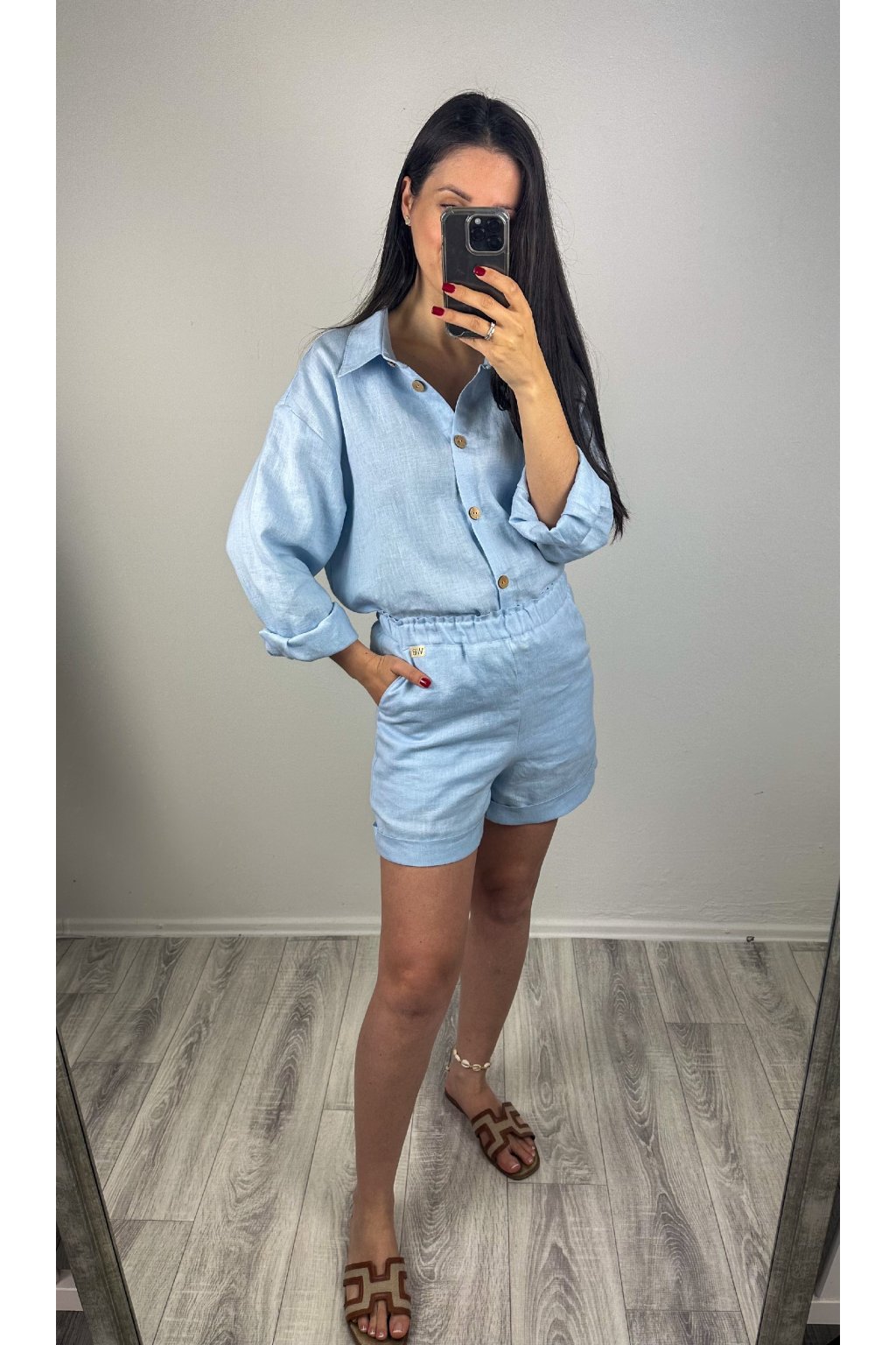 Objavte ľahkosť a nadčasovosť s týmto elegantným letným setom z 100% prírodného mäkkčeného ľanu. Je ideálny na horúce dni, dovolenkové prechádzky, festivaly či len tak na bežné nosenie, keď chcete vyzerať upravene, no cítiť sa pohodlne.