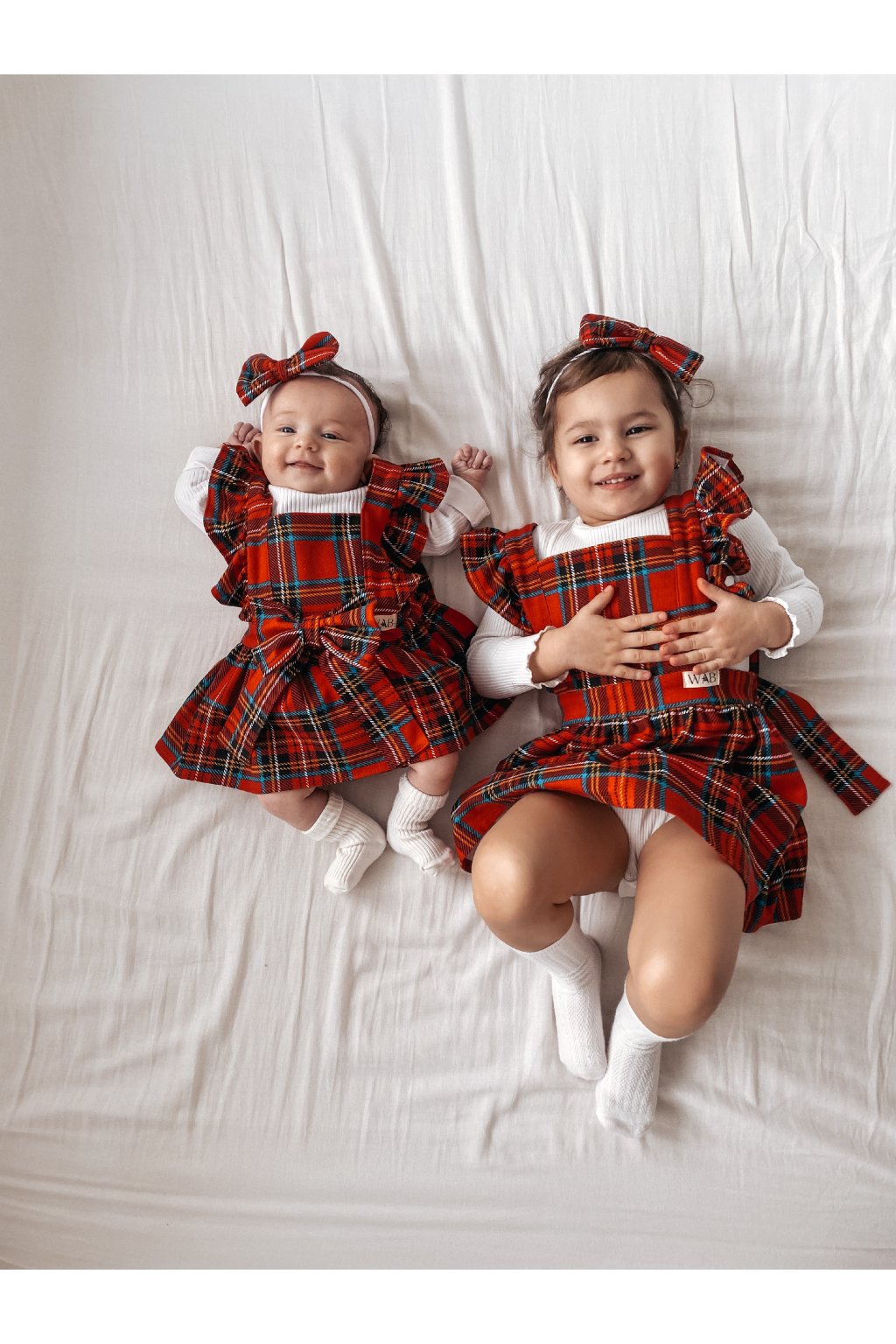 Tieto dokonalé šaty sú ideálne na vianočné fotenie alebo na slávnostnú večeru pri štedrovečernom stole. Vďaka trakom s regulovateľnými dierkami ich môžete prispôsobiť rastu vašej malej slečny, takže ich bude môcť nosiť niekoľko sezón.